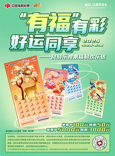 活动期间,凡购买“有福”单票中得100元奖级,可额外获得价值50元的即开票赠票;单票中得5000元奖级,可额外获得价值3000元的即开票赠票。彩民完成彩票兑奖后,进入“重庆福彩中心”APP或“重庆福彩”小程序,扫描中奖彩票左下方保安区,即可获得相应金额的赠票卡券,赠票卡券须在福彩投注站核销,核销有效期至2025年6月23日24:00。