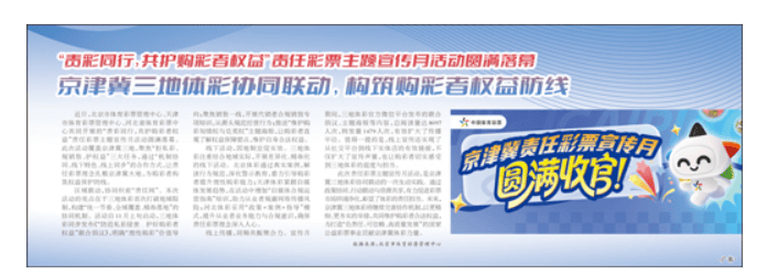 此次责任彩票主题宣传月活动,是京津冀三地体彩协同联动的一次生动实践。通过政策协同、行动联动与资源共享,有力促进彩票市场环境净化,彰显了体彩的责任担当。未来,京津冀三地体彩将继续完善协作机制,以更精细、更务实的举措,共同维护购彩者合法权益,为打造“负责任、可信赖、高质量发展”的国家公益彩票事业贡献京津冀体彩力量。