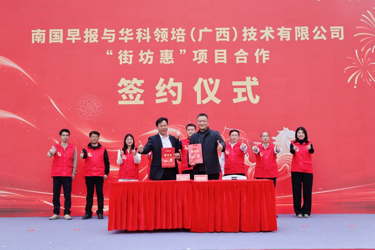 南国早报与华科领培(广西)技术有限公司“街坊惠”平台战略合作签约,双方依托媒体资源与社区服务优势,创新打造“媒体+社区+生活服务”模式,聚焦社区夜校、邻里市集等核心服务,推动便民举措扎根基层。