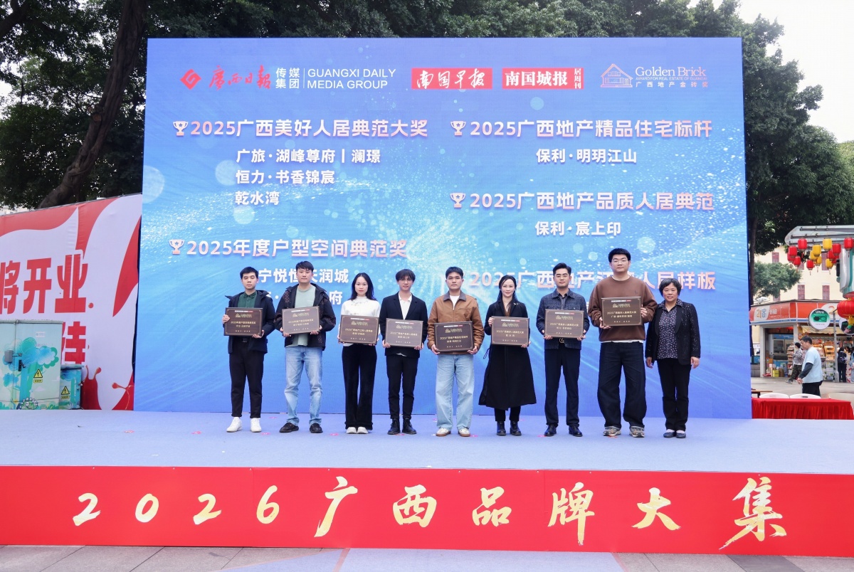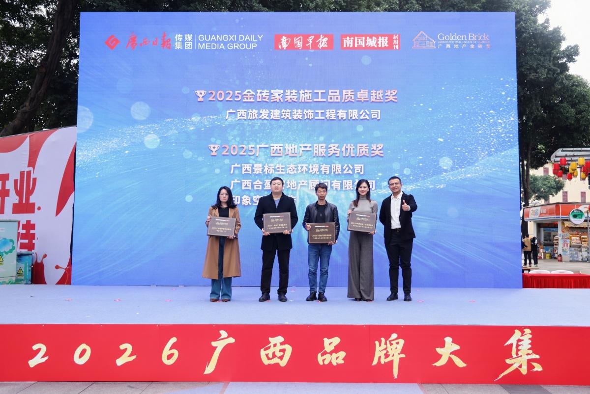 地产服务类中,广西建筑装饰工程有限公司荣获“2025金砖家装施工品质卓越奖”;广西景标生态环境有限公司、广西合盈房地产顾问有限公司、印象空间广告荣获“2025广西地产服务优质奖”。