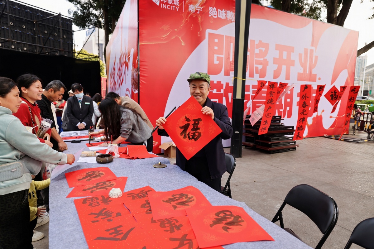 此外,现场还设有非遗体验、春联书写、医保咨询等专区,书法家免费书写春联和福字,医保部门提供政策咨询与互动抽奖,南宁市慈善总会开展公益宣传,让市民全方位感受逛集乐趣与暖心服务。