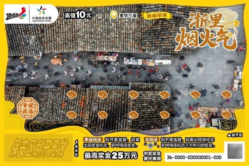 浙江体彩“浙里烟火气”新春主题即开票面市啦,兰溪游埠早茶是“浙里烟火气”新春主题即开票票面设计九大浙江代表性场景之一,在游埠景区“影像兰溪馆”现场刮刮乐,体验不一样的浙里烟火气。