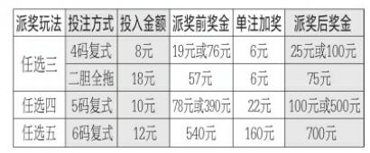 派奖期间,采用4码复式或二胆全拖投注任选三,单注中奖奖金加奖6元;采用五码复式投注任选四,单注中奖奖金加奖22元;采用六码复式投注任选五,单注中奖奖金加奖160元。任三、任四、任五三个玩法中的四种投注方式进行派奖,每天79期,共5天。记者走访了一些体彩投注站,很多彩民朋友都纷纷表示体彩高频11选5派奖给他们带来更多的奖金。某体彩站彩友王先生(化姓)表示:“我平时没事就会一直待在投注站,看好走势图以后就连着购买很多期11选5。我自认为看号还是比较准的,经常中奖。这次体彩高频11选5派奖,我按着这几种派奖玩法购买,改变了我以前单打倍投的习惯,反而中得更多的奖金,太让我高兴了!我以后就按照复式和胆拖的方法购买体彩高频11选5的任三、任四、任五了!”