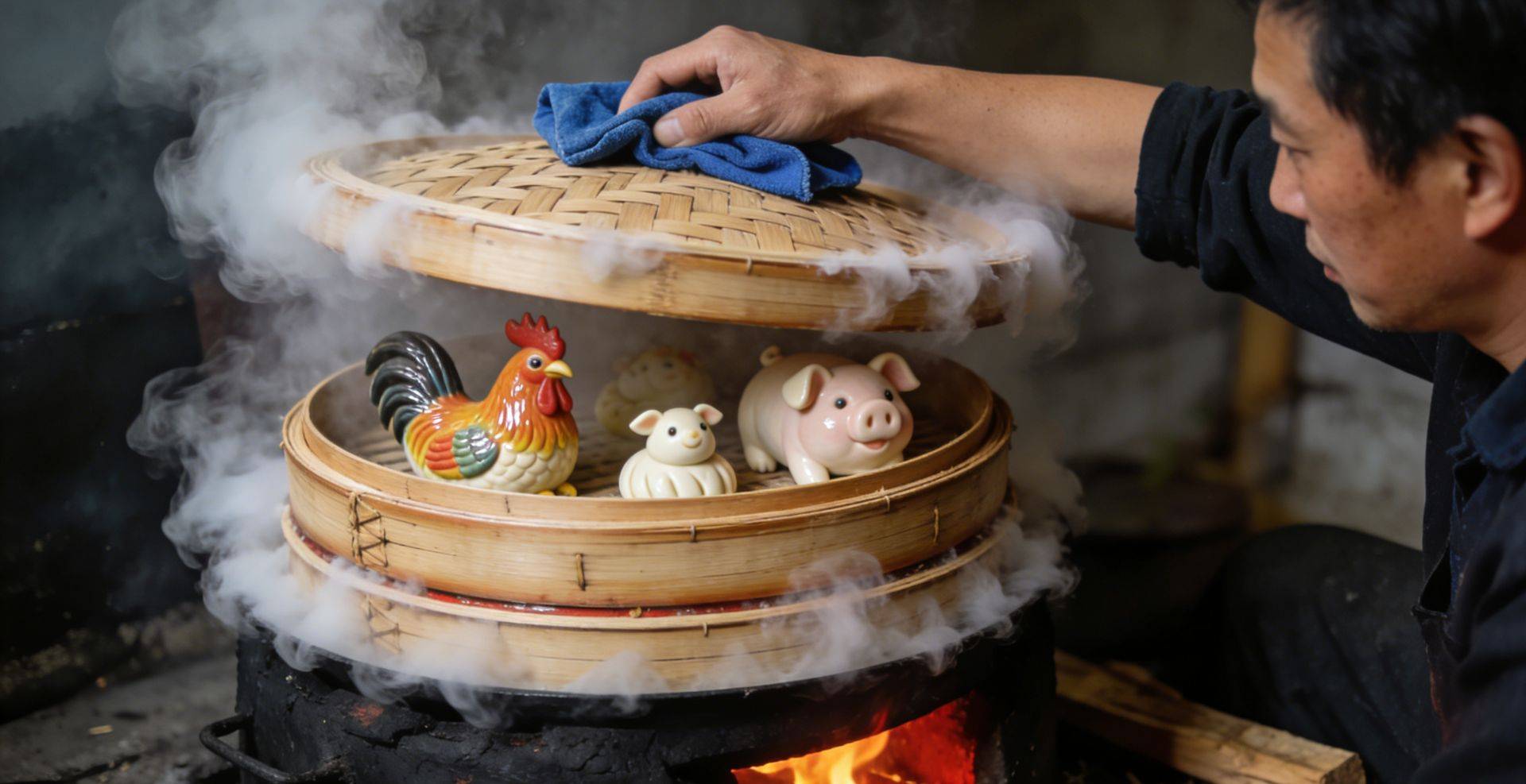 这门手艺的精妙,在于“七分塑,三分彩”的匠心,其制作步骤严谨细致,每一步都饱含老匠人的经验积淀。第一步是备料选米,需精选颗粒饱满的上等晚稻籼米与糯米,按特定比例混合,经清水淘洗干净后晾干,再用石磨碾成细腻米粉,过细筛去除杂质,保证米粉质地均匀无颗粒。第二步是揉制米坯,取部分筛好的米粉加温水搅拌成糊状,上屉蒸熟制成“熟芡”,随后将熟芡与剩余干米粉混合,反复揉搓至面团光滑有弹性,期间需根据米粉干湿程度适量补水或补粉,直至米坯不粘手、不开裂。第三步是塑形创作,艺人凭借指尖巧劲,通过揉、搓、捏、压、剪、刻等技法,将米坯塑造成所需造型,无论是雄鸡的羽翼、小猪的耳朵,还是生肖的神态,都需精准把控力道,让作品轮廓清晰、形神兼备。第四步是天然赋彩,采用商陆草煮水取红、黄栀子熬制取黄、艾草榨汁取绿等天然食材提取色素,用细毛笔轻轻点染在塑形完成的米塑上,色彩清新自然,无化学异味。最后一步是蒸制定型,将上色后的米塑放入蒸笼,用中火慢蒸15-20分钟,待米香四溢、质地紧实后即可取出。整套工序全凭手感把控,粉坯的干湿、指尖的力道、蒸制的时长都直接影响作品品质,蒸熟后的米塑既有稻米的清香,又可蒸可炸,既是精美的艺术品,也是风味独特的小吃。