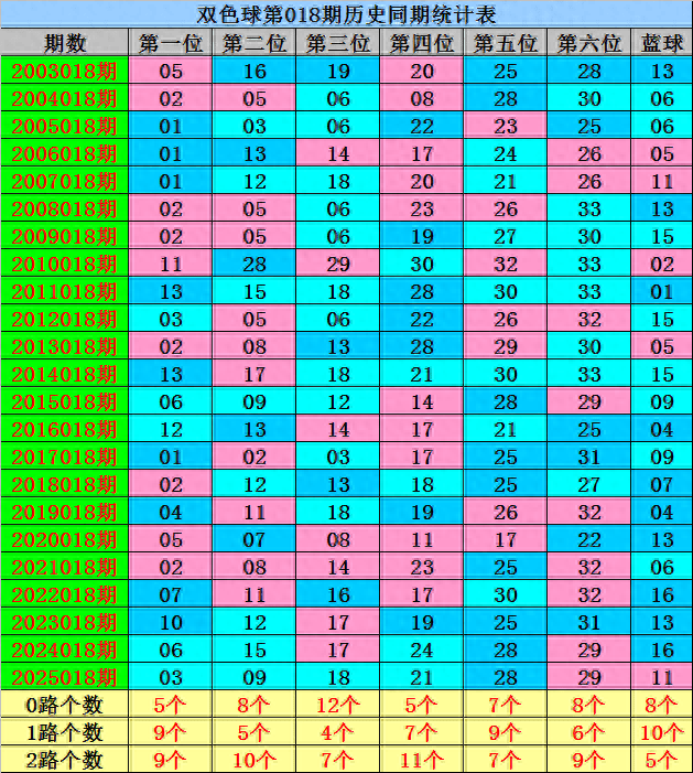第一位:历史同期0路红球开出:03、06、12;1路红球开出;01、04、07、10、13;2路红球开出;02、05、11,红球012路个数比为5:9:9,目前历史同期0路奖号连续出现2年,今年同期预计0路红球连出,关注红球09。